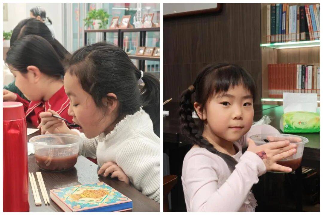 集齐5枚印章的家庭,纷纷奔赴暖心的腊八粥品尝环节。捧着一碗碗热气腾腾的腊八粥,亲子围坐桌边,小口品尝着软糯香甜的美味,满足的笑容在每个人脸上绽放。大家一边享用暖粥,一边分享着闯关时的趣事与收获,温热的粥香与温馨的畅谈声交织,将冬日的寒意彻底驱散,也让传统节日的烟火气愈发浓厚。活动全程,志愿者们坚守岗位,在各闯关点耐心引导、细致盖章,同时悉心维护现场秩序,用专业与热忱为活动保驾护航,确保每一组家庭都能沉浸式感受活动的乐趣。