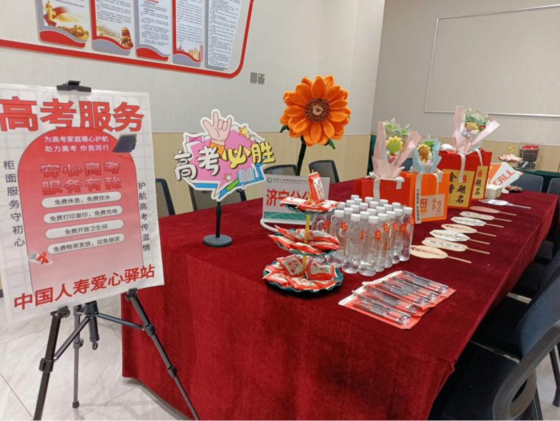 考场外,中国人寿济宁分公司在全市多个高考考点周边设立“爱心服务站”,配备空调移动休息车。休息车内座椅舒适、空调开放,并提供饮用水、防暑药品,为陪考家长打造清凉舒适的休憩空间。服务站内,饮用水、防暑药品、考试文具等爱心物资一应俱全,工作人员随时为考生和家长提供帮助。