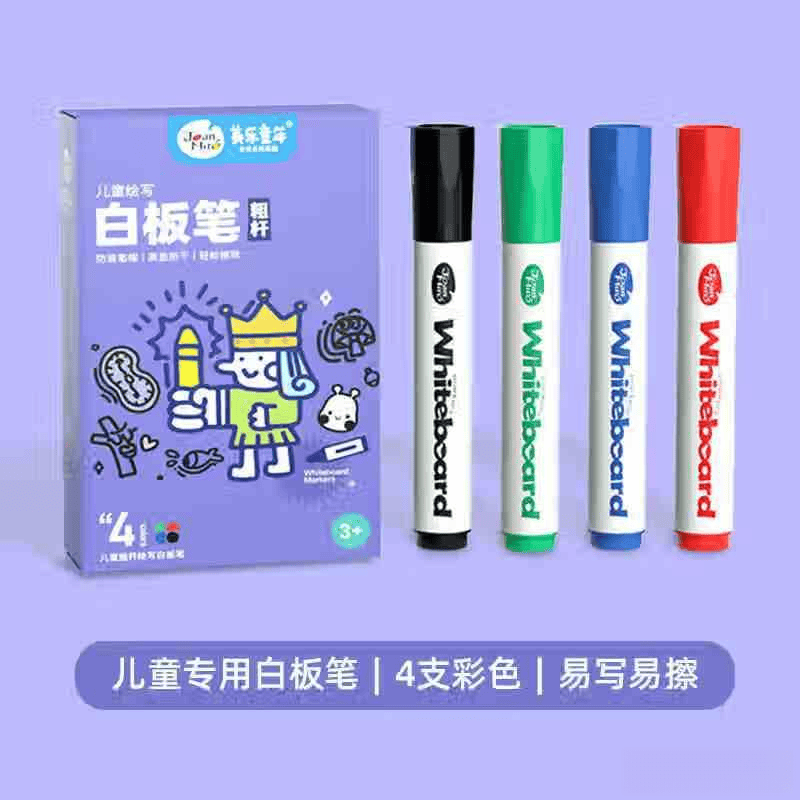 美乐童年白板笔拥有丰富的颜色选择,以满足孩子的绘画和书写需求。同时,设计上也充分考虑了儿童的握持习惯。粗杆设计让小手更容易握紧,提高了孩子的使用体验。特殊的墨水配方保障了笔迹可轻松擦除,避免了因错误而导致的浪费,让孩子可以自由地探索和表达自己的创意。