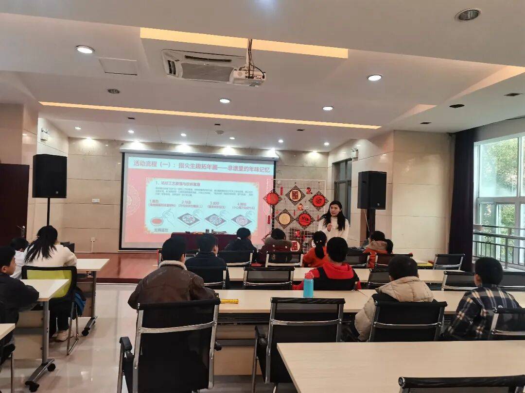 备好拓印版、红金黑颜料等工具后,老师手把手示范“蘸色—匀涂—拓印—揭纸”四步诀,提醒大家颜料蘸到不滴液才刚好,拓印轻压才能留住完整纹路。实践环节更是热闹,低年级学员用单一色彩拓出百福吉祥与年年有余,高年级学员则大胆尝试金纹红底的创意搭配,拓印完成后再用彩笔添上细节,每一幅作品都藏着专属的年味巧思,最终成为文化墙上最亮眼的“马年吉祥非遗展”。
